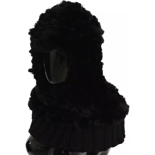 Dolce & Gabbana Black Faux Fur Whole Head Wrap Hat